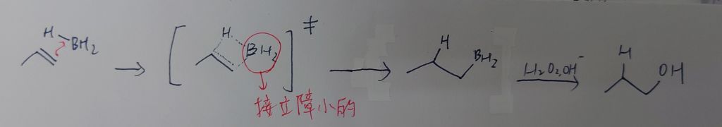 烯的硼氫加成反應:反馬式位向(OH在低級碳,H在高級碳),同側加成