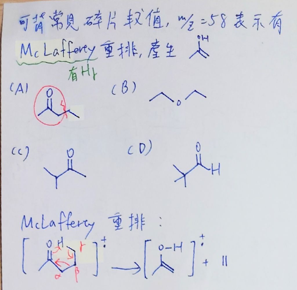 35. 哪一化合物的質譜圖有明顯的片段在 m/z 58 之處?
