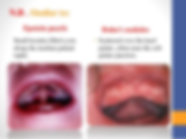 (B)發生在幼兒上腭正中線(midpalatine raphe)的白色點狀硬物稱為Bohn's nodules