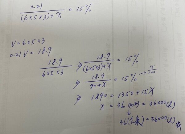 36 房間的體積為 V=6 m×5 m×3 m,其中 O2 占 0.21 V,請問至少要加入多少公升(L)的 CO2 讓燃燒作用無法持續?