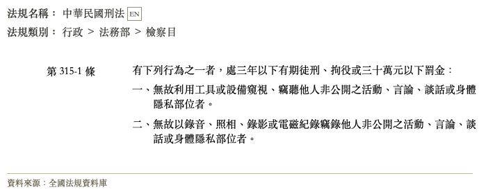 (A)刑法第 315 條之 1 竊錄他人隱私部位罪