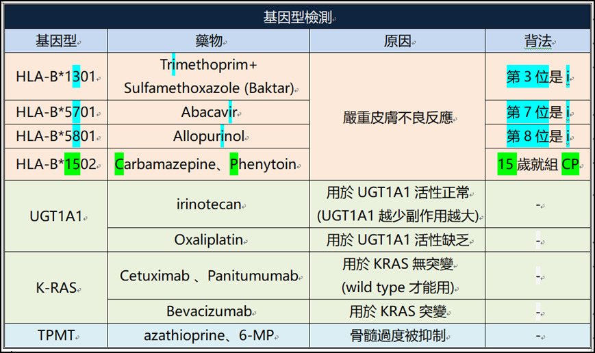 TPMT基因型的檢測很重要,因為若該基因所轉譯的產物活性過弱,會提高骨髓過度被抑制的風險,相反的該基因所轉譯的產物活性過強,會造成azathioprine (AZA) 與6-MP藥效不足。
