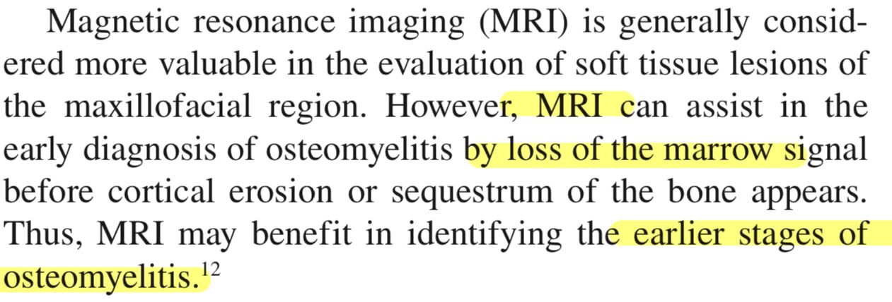 36.病人疑似罹患下顎骨骨髓炎,且有腎功能障礙,下列何項檢查可以偵測到早期骨髓炎之骨質變化?