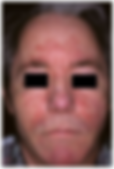 36.罹患Parkinson's disease的50歲男性,近來常有頭皮屑及頭皮發癢,在臉上眉毛以及鼻子四周出現如圖所示的 脫屑性紅斑,最可能的診斷是: