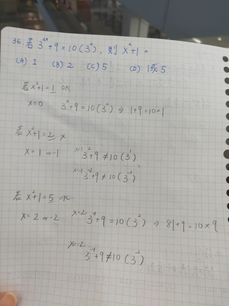 36. 若32x+9=10(3x),則x2+1=