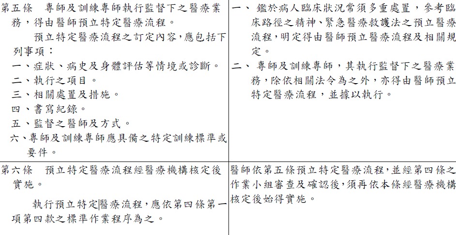 「專師及訓練專師執行監督下之醫療業務辦法」第 5 條,有關預立特定醫療流程訂定內容 之規定,下列何者錯誤?
