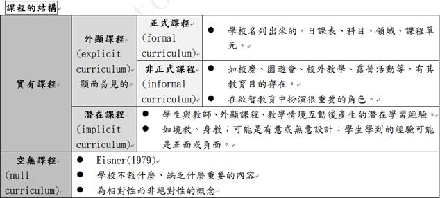 (A)顯著課程(intended curriculum)