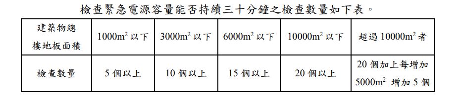 (C)建築物總樓地板面積 1000m2以下,緊急電源容量之檢查數量為 10 個以上
