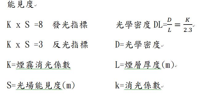 消光係數 (K) 與火場能見度 (S) 之關係(經驗公式):