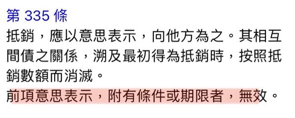 舉例:如果下個月我有跟你借錢(條件),你欠我的就抵銷