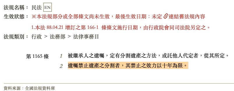(C)以遺囑禁止遺產分割 15 年者,該禁止遺產分割之遺囑無效