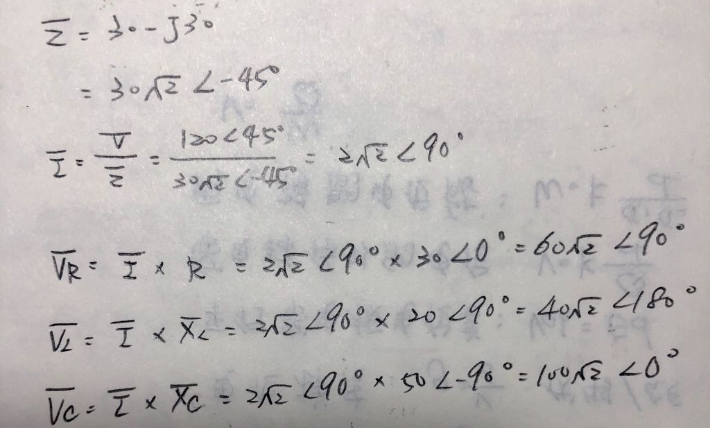 =120∠45° ,R=30 Ω,XL=20 Ω,XC=50 Ω ,則下列何者錯誤?