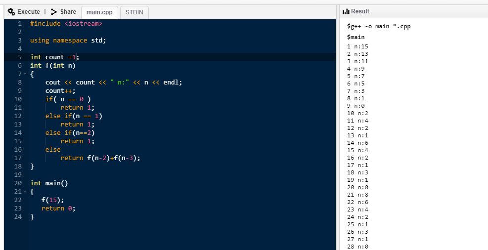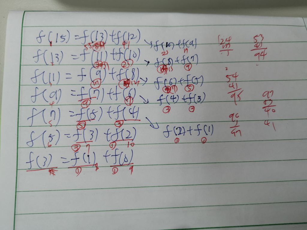 39. 給定 f(n)= f(n-2)+f(n-3), 且已知 f(0)= 1, f(1)=1, f(2)=1。若將 f(n) 寫成遞迴函式,在計算 f(15) 的過程中, f(n)總共會被呼叫幾次(包含第一次 f(15)的呼叫)?
