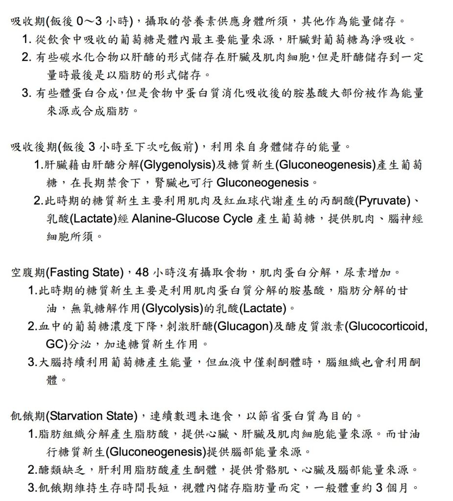 4 下列何者是人體在營養素從腸胃道進入血液的吸收期(absorptive state)主要的能量來源?