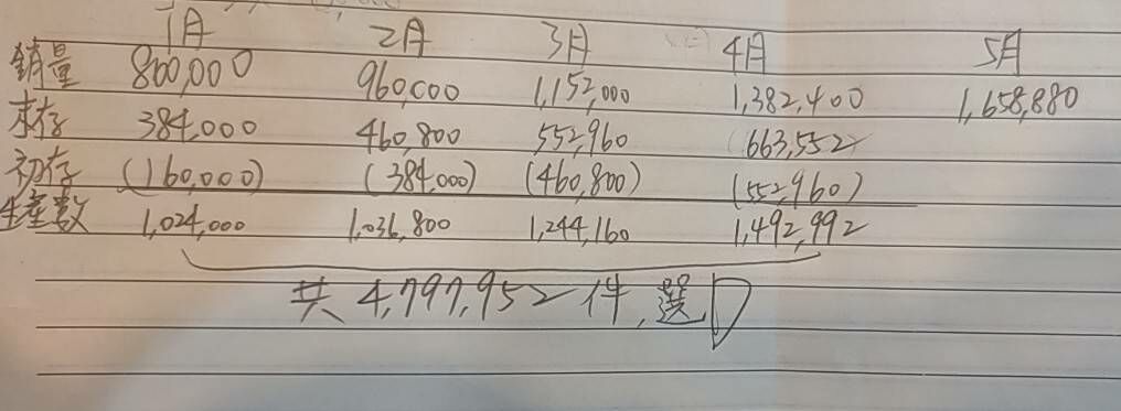 4 甲公司計劃 20X2 年 1 月份銷售 A 產品 800,000 單位,並且預期當年每個月的銷售成長率為