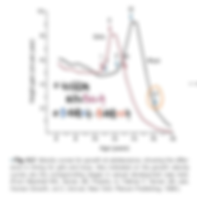 • 男性的青春期生長高峰通常出現在大約...