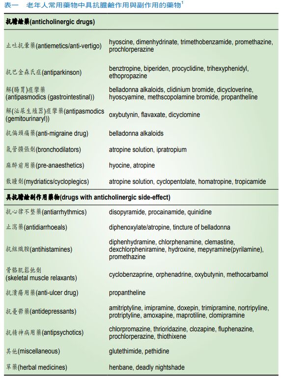 ->抗膽鹼藥品: 如帕金森氏症藥品(Biperiden, Trihexylphenidyl)
