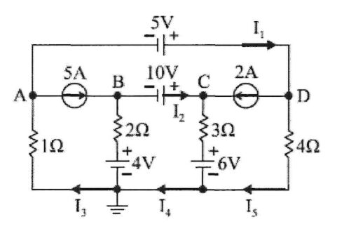 5.如圖所示電路,求其中電流I多少?(A)2A(B)-3A(C)0A(D)3A