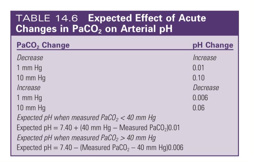 4.當PaCO2急性改變時,可預測的動脈pH值的變化,下列何者正確?