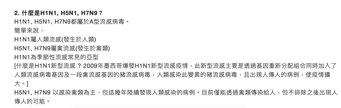 ❌H5N1 = 高病原性禽流感; H7N9 = 多為低病原性禽流感(對禽類)