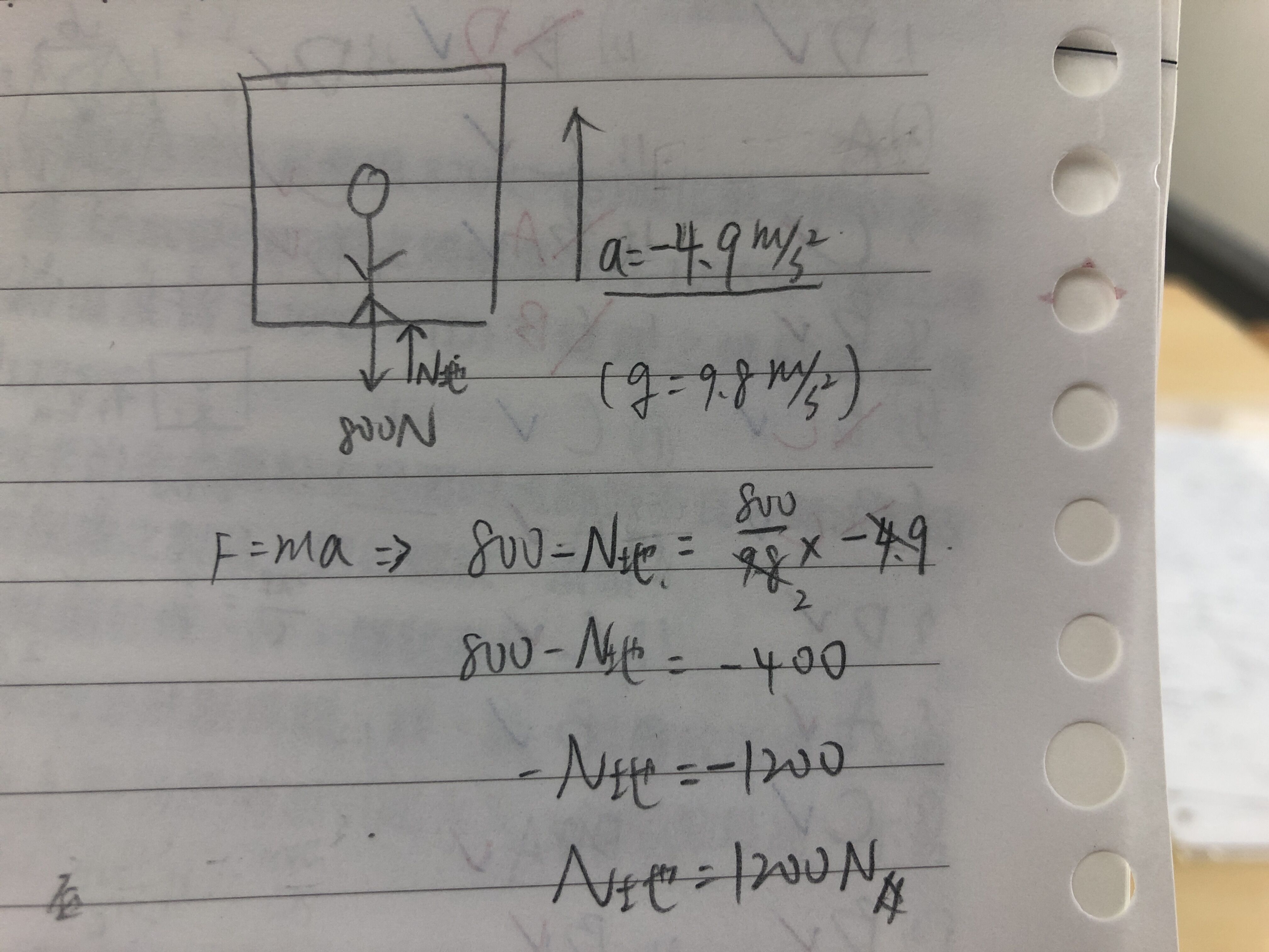 4. 某人體重800N,站在電梯內的地板上,如電梯以4.9m/s2