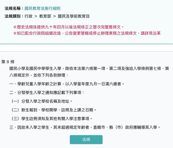 一、學齡兒童入學年齡之計算,以入學當年度九月一日滿六歲者。