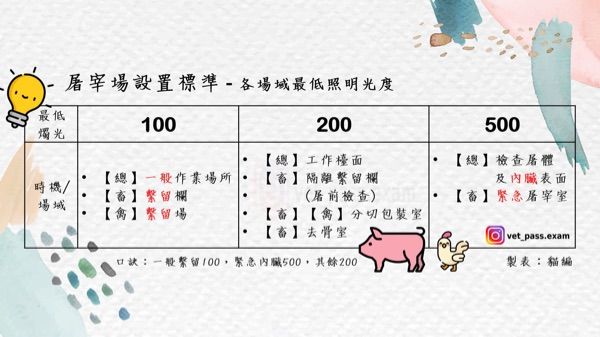 40 根據我國屠宰場設置標準規定,工作檯面之照明光度至少應保持多少米燭光以上之光度?