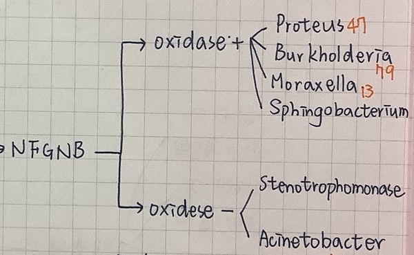 40.下列何種細菌的oxidase試驗結果與其他三者不同?