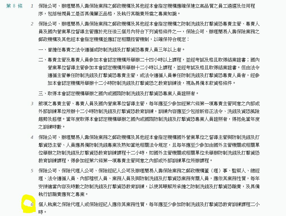 40.個人執業之保險代理人或保險經紀人,每年應至少參加多少時數之防制洗錢及打擊資恐教育訓練課程?