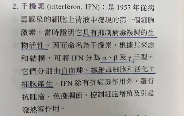 (A)幾乎所有人體細胞都可製造第一型干擾素(alpha和beta);第二型干擾素(interferon gamma)可由免疫細胞