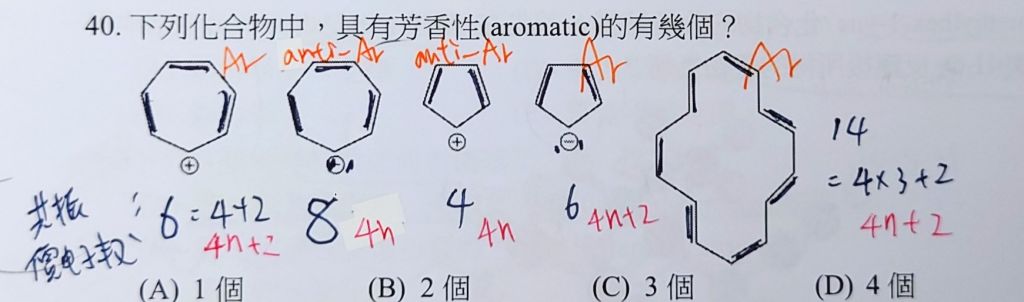 40. 下列化合物中,具有芳香性(aromatic)的有幾個?