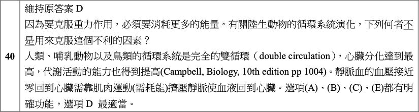 40. 陸生動物在運動時,與魚類等水生動物相比,因為要克服重力作用,必須要消耗更多的能
