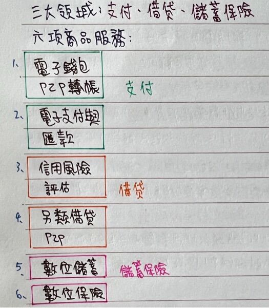 41.根據聯合國(UNSGSA)2019 年之報告,若某家銀行將電子錢包及 P2P 轉帳應用於商品服務中,係屬於下列何項領域之運用?