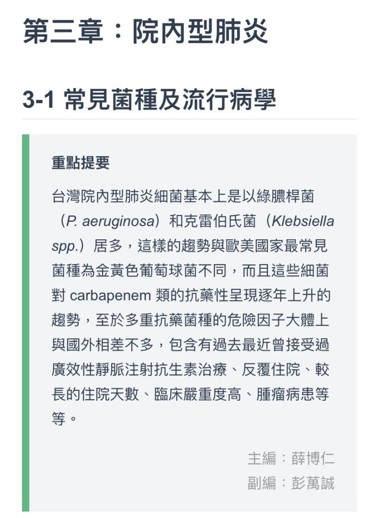 pseudomonas aeruginosa 綠膿桿菌— 院內感染肺炎致病菌