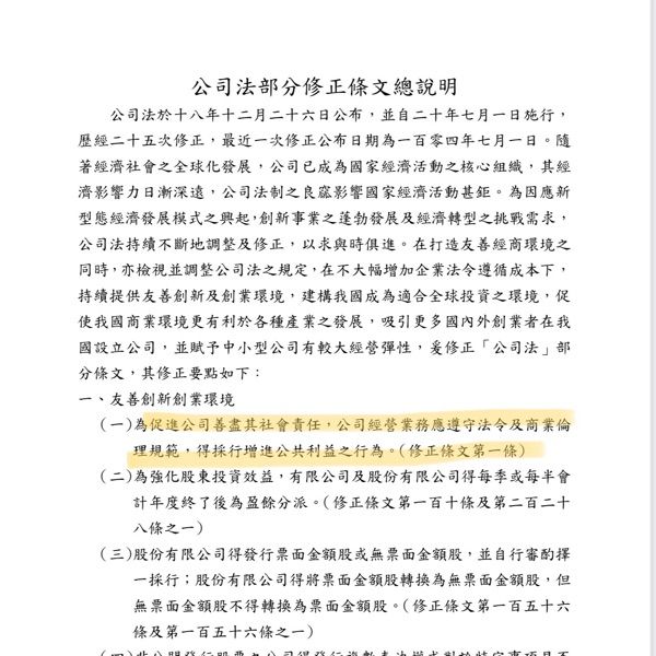 2.公司經營業務,應遵守法令及商業倫理規範,得採行增進公共利益之行為,以