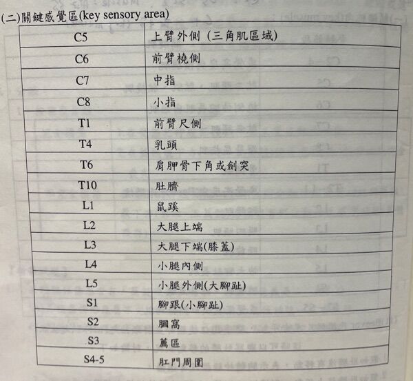 42.一名脊髓損傷患者經評估後之感覺與運動機能節數結果如下表所示,下列敘述何者正確?