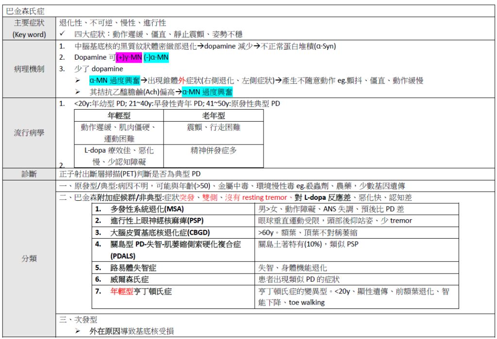 巴金森症的分類