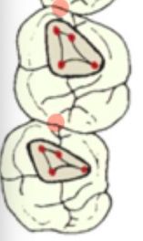 ->第一大臼齒較常出現四個根管(MB1, MB2, L, D)