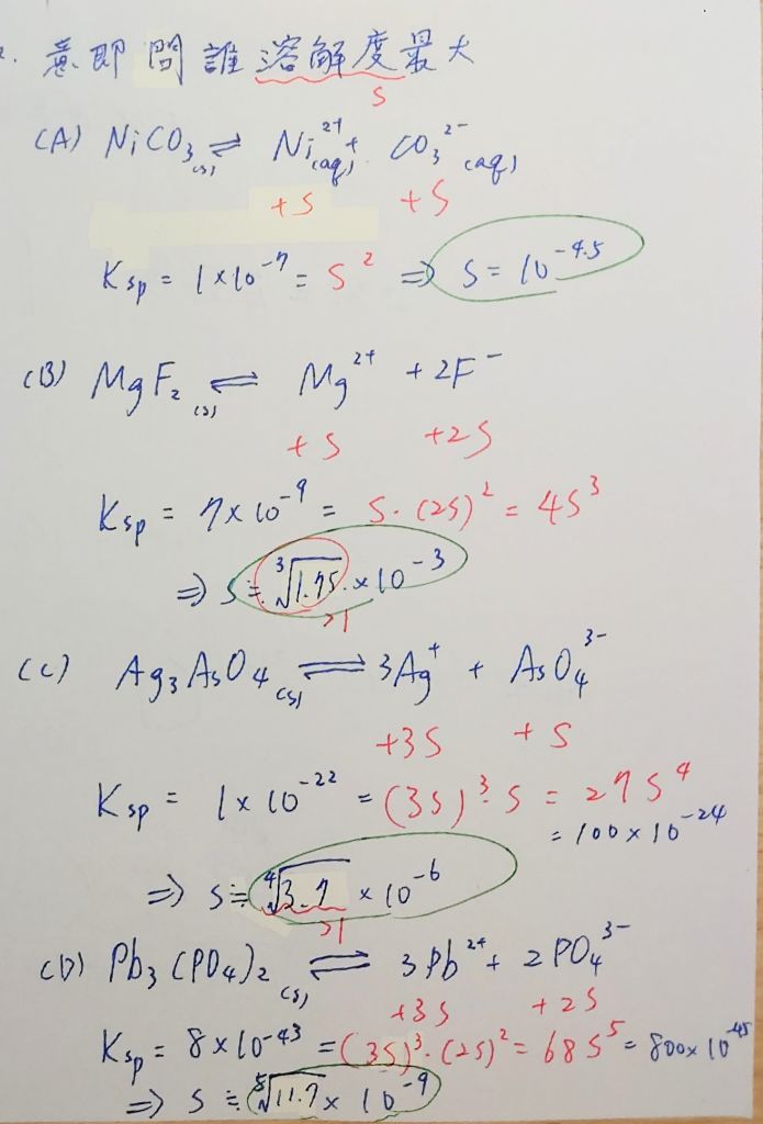 42. 欲溶解相同莫耳數的下列鹽類,何者需水量最少?