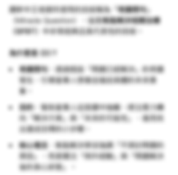 - 例外問句:過去成功經驗的探索:「有哪些時候,這些問題是不會發生的?」、「在那些時候,你的想法(做法)有什麼不同?」、「以前有沒有類似的狀況?你那時候怎麼處理?」