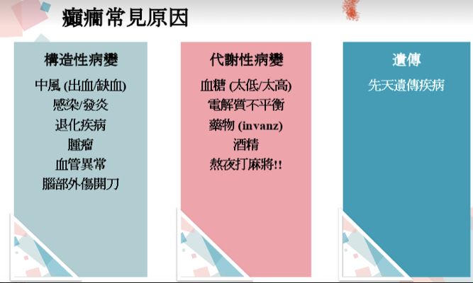 低血糖、電解質異常(如低鈉、低鈣)都可能引起抽搐,因此急診處理時需快速檢查排除。