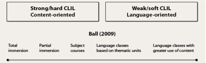 (1) Hard CLIL:重學科、 以學科內容為主的完全沉浸或部分沉浸式教學