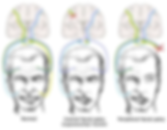 (B) 眼睛向上看時,兩側額頭都有抬頭紋 額肌對側不受影響 正確