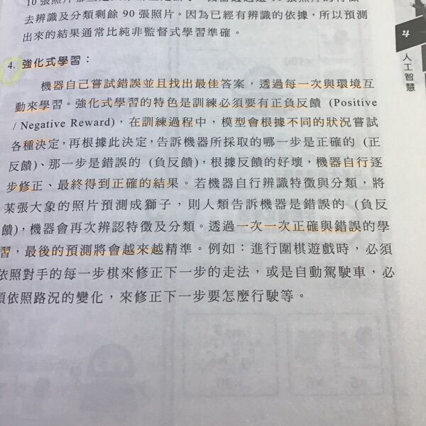 44.圍棋機器人依照人類對手的反饋修正自己棋路,這在機器學習裡,屬於下列何者?