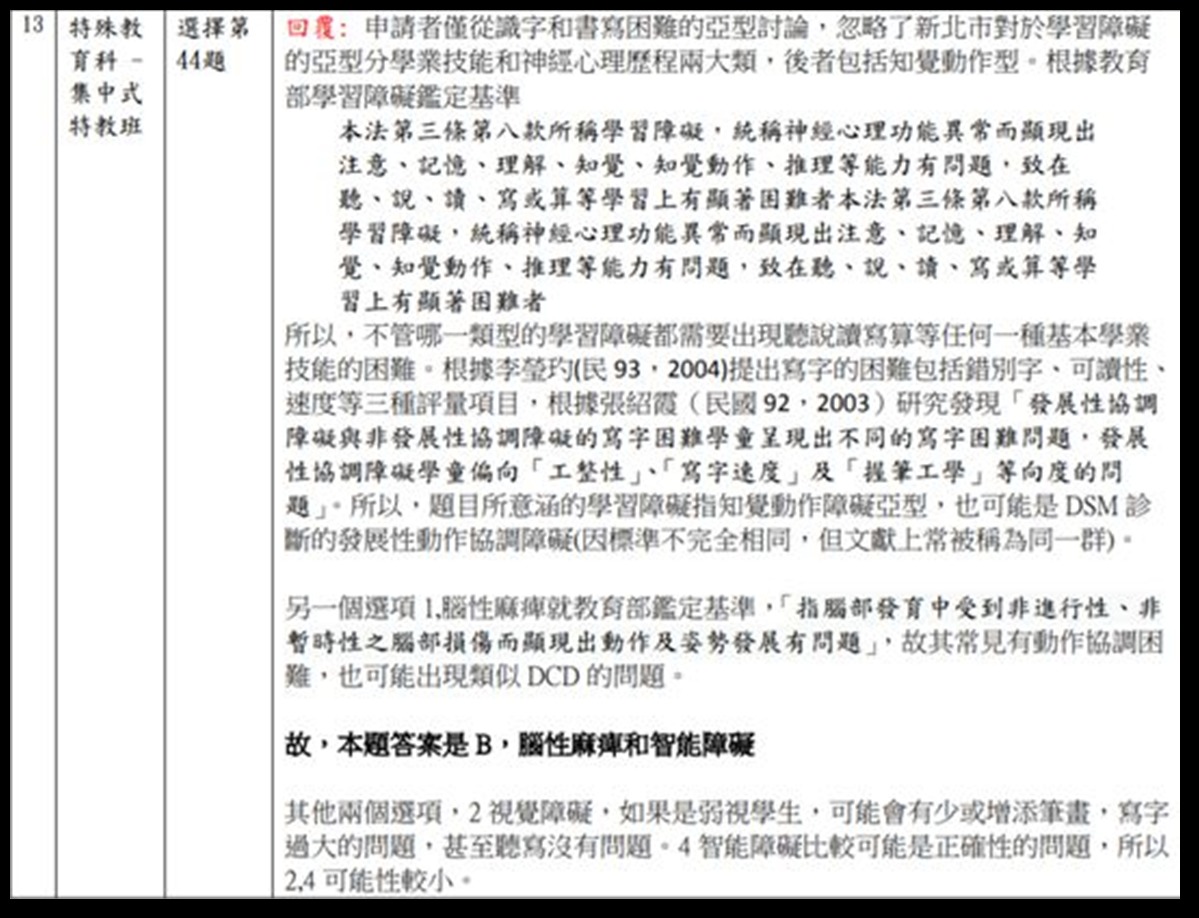 44. 下列哪些特殊學生在聽寫字的正確性沒有問題,但寫出來的字體可讀性很差,寫字 速度也慢? ① 腦性麻痺② 視覺障礙 ③學習障礙④ 智能障礙