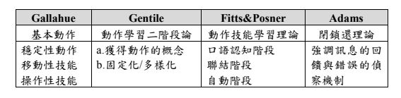 1.獲得動作的概念(分辨相關及非相關訊息與培養協調能力)2.固定或變化(針對開放性技能)。