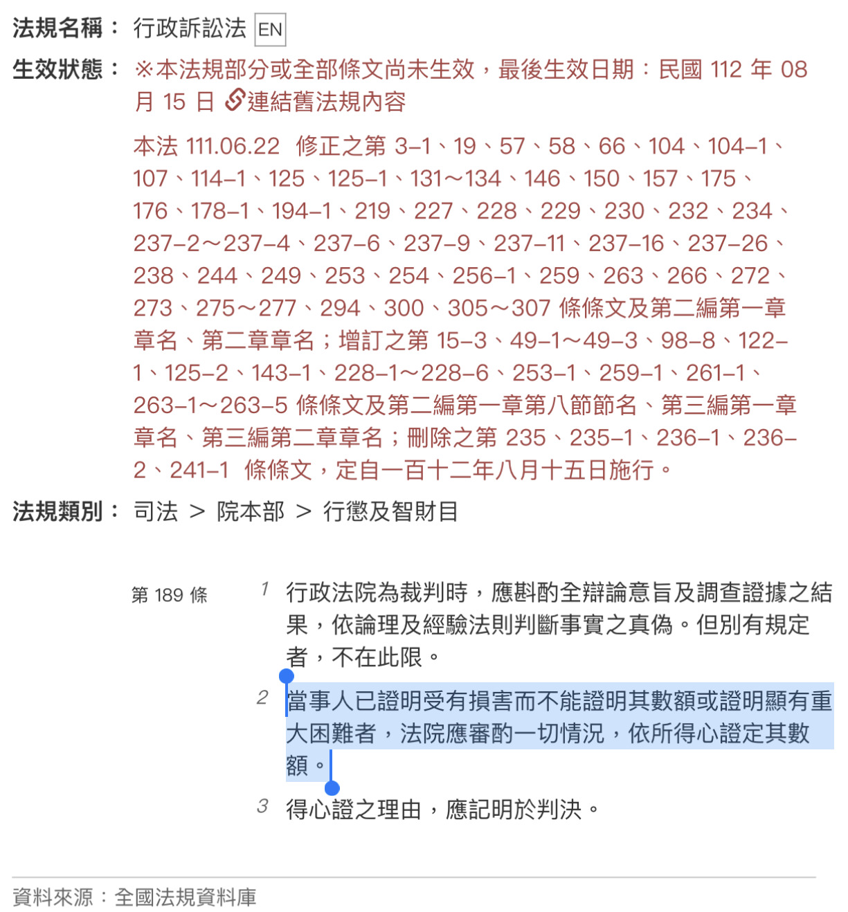 行政訴訟法 第 189 條
