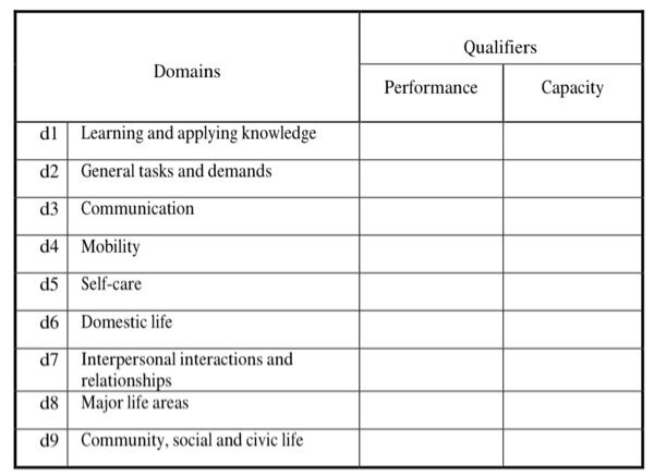 45.一位患有腦性麻痺的8歲學童在治療室評估時可以自行放手走10公尺,但在學校必須老師提供中度協助才能走到隔壁教室,下列那一個國際健康功能與身心障礙分類系統(International Classification of Functioning,