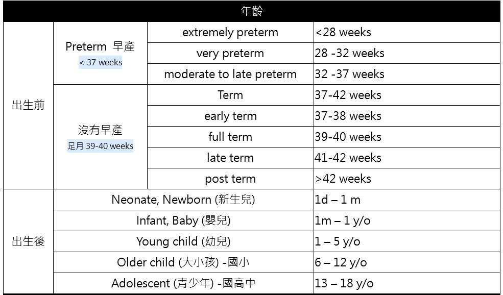 PMA = GA + PNA 評估在足月之前的早產兒年齡、用藥劑量重要的一個指標 |