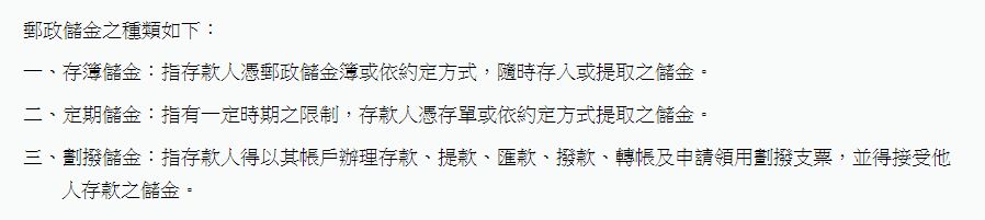 (A)指存款人憑郵政儲金簿或依約定方式,隨時存入或提取之儲金